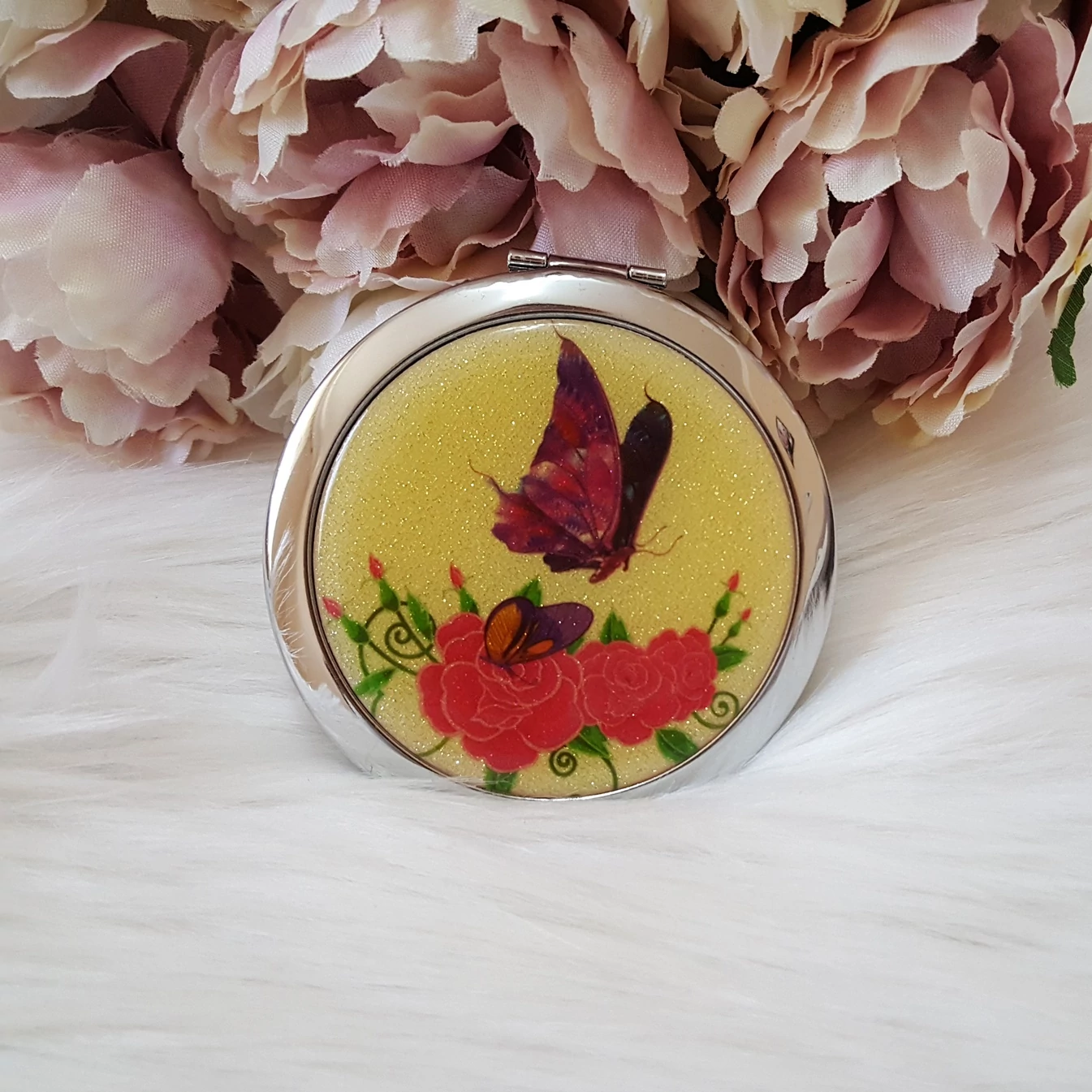 Pillangó-virág mintás kézitükör